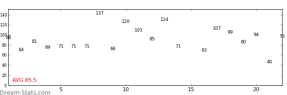 | AVG | 86.8 | 21.7 | 13.7 | 8.0 | 3.4 | 3.0 | 0.0 | 0.8 | 1.0 | 1.3 | 1.3 |