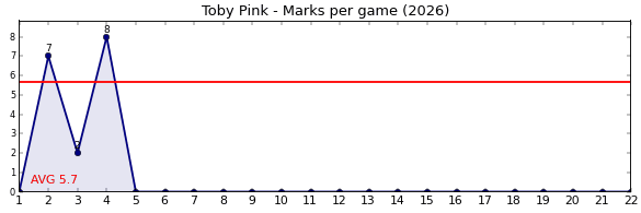 | Round | Opponent | Previous 3 Games | AVG. | This Game | Diff. | |||