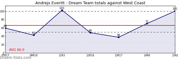 | 2015 | 2 | 101 | 22 | 17 | 5 | 9 | 1 | 0 | 1 | 0 | 1 | 2 |