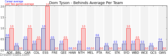 | Western Bulldogs | 4 | 0.5 | 0.3 | 0.2 |