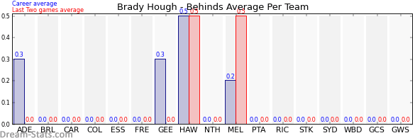 | Hawthorn | 4 | 0.5 | 0.5 | 0.0 |