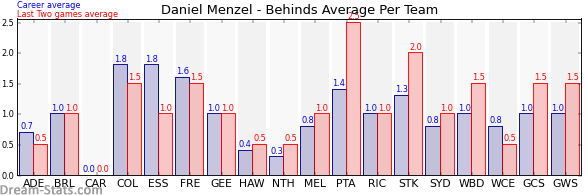 | St. Kilda | 6 | 2.0 | 1.3 | 0.7 |