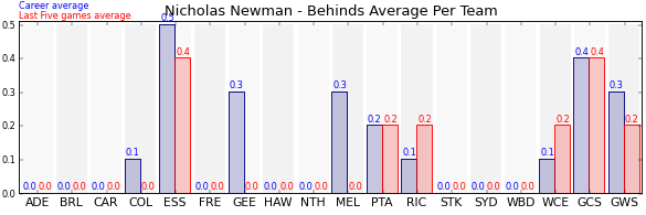 | Melbourne | 8 | 0.0 | 0.3 | -0.3 |