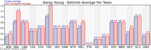 | Western Bulldogs | 5 | 0.8 | 0.8 | 0.0 |