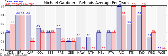 | Essendon | 12 | 0.4 | 0.4 | 0.0 |
