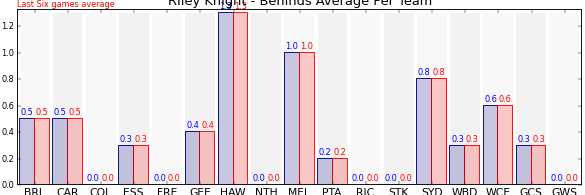 | Team | Games | Last 6 Avg. | Overall Avg. | Difference |