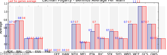 | Team | Games | Last 6 Avg. | Overall Avg. | Difference |