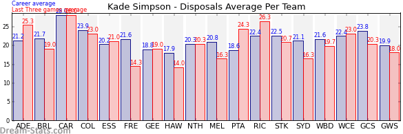 | Team | Games | Last 3 Avg. | Overall Avg. | Difference |