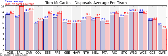 | Richmond | 7 | 13.4 | 12.9 | 0.5 |