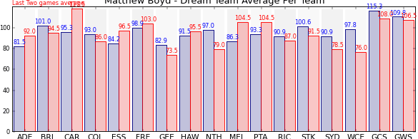 | Team | Games | Last 2 Avg. | Overall Avg. | Difference |