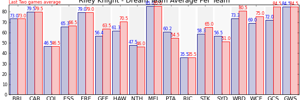 | Team | Games | Last 2 Avg. | Overall Avg. | Difference |