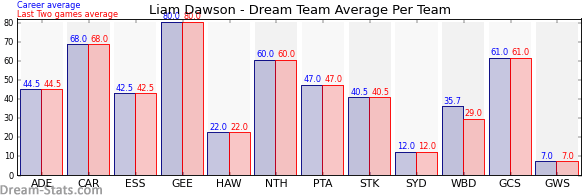 | Team | Games | Last 2 Avg. | Overall Avg. | Difference |