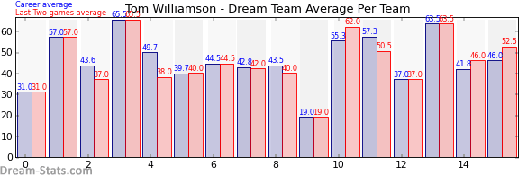 | Brisbane | 2 | 57.0 | 57.0 | 0.0 |