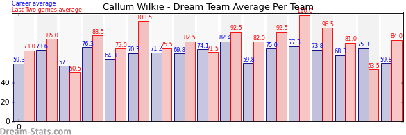 | Team | Games | Last 2 Avg. | Overall Avg. | Difference |