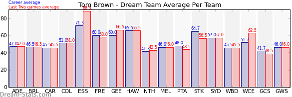| Brisbane | 2 | 46.5 | 46.5 | 0.0 |