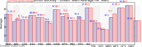 | Team | Games | Last 3 Avg. | Overall Avg. | Difference |