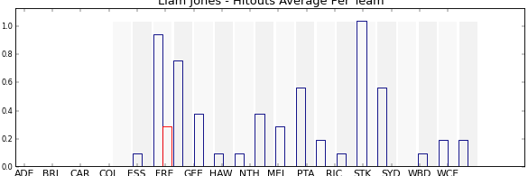 | Collingwood | 1 | 31.0 | 31.0 | 0.0 |