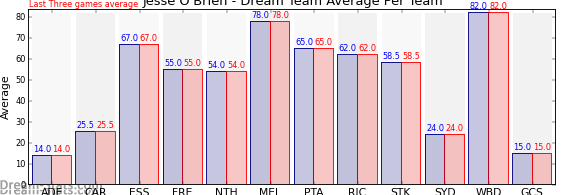 | Team | Games | Last 3 Avg. | Overall Avg. | Difference |