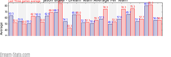 | Team | Games | Last 3 Avg. | Overall Avg. | Difference |