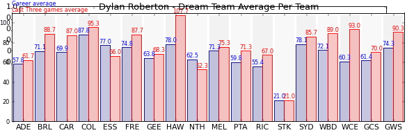 | Team | Games | Last 3 Avg. | Overall Avg. | Difference |
