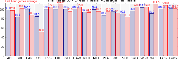 | Adelaide | 9 | 97.8 | 98.8 | -1.0 |