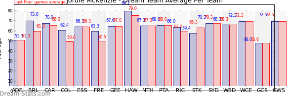 | Team | Games | Last 4 Avg. | Overall Avg. | Difference |