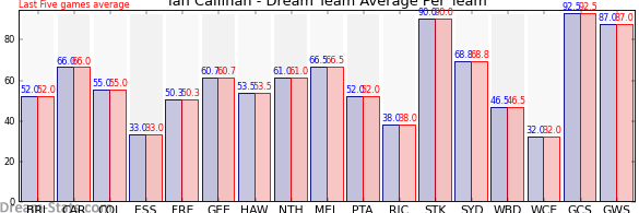 | Team | Games | Last 5 Avg. | Overall Avg. | Difference |