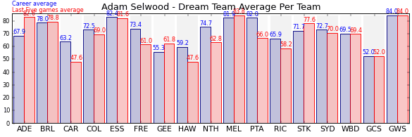 | Adelaide | 16 | 82.6 | 67.9 | 14.7 |