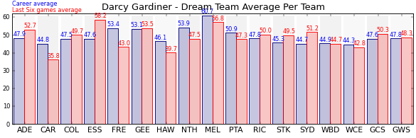 | Team | Games | Last 6 Avg. | Overall Avg. | Difference |