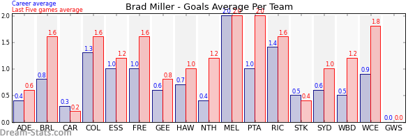 | Western Bulldogs | 11 | 1.2 | 0.5 | 0.7 |