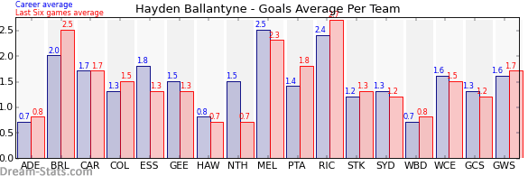| Western Bulldogs | 10 | 0.8 | 0.7 | 0.1 |