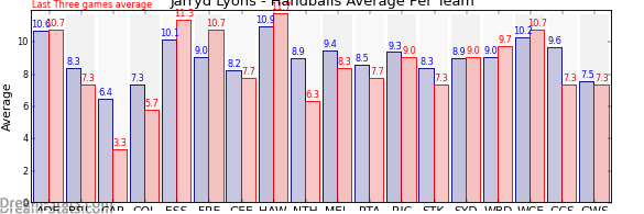 | Hawthorn | 11 | 11.7 | 10.9 | 0.8 |