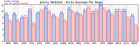 | Geelong | 12 | 7.5 | 8.4 | -0.9 |