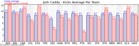 | Adelaide | 11 | 12.0 | 9.7 | 2.3 |