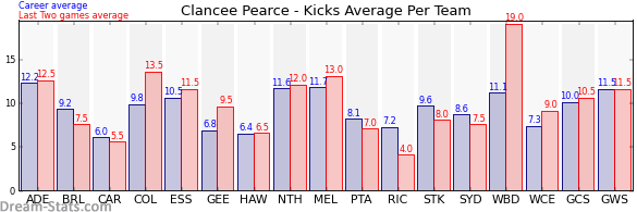 | Western Bulldogs | 7 | 19.0 | 11.1 | 7.9 |