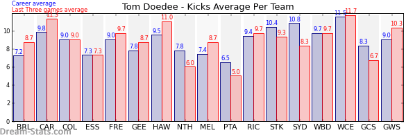 | Team | Games | Last 3 Avg. | Overall Avg. | Difference |