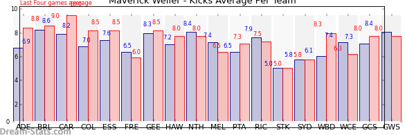 | Western Sydney | 7 | 8.0 | 8.4 | -0.4 |