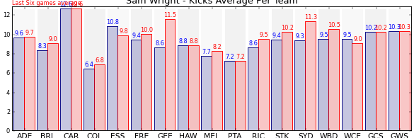 | Team | Games | Last 6 Avg. | Overall Avg. | Difference |