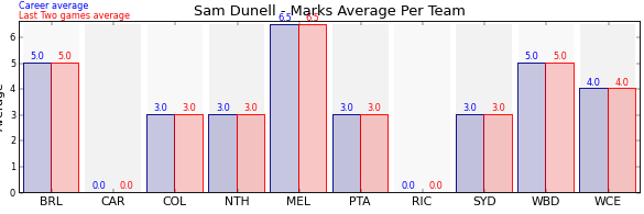 | Carlton | 1 | 0.0 | 0.0 | 0.0 |
