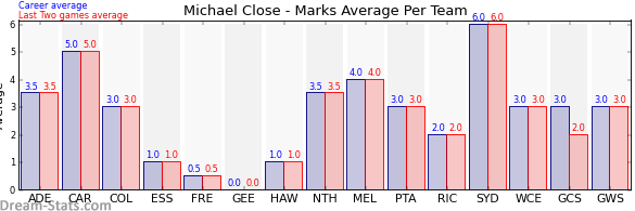 | Collingwood | 1 | 3.0 | 3.0 | 0.0 |