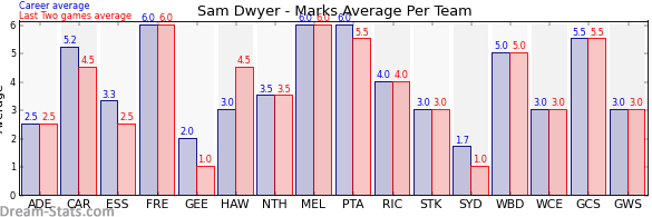 | Fremantle | 1 | 6.0 | 6.0 | 0.0 |