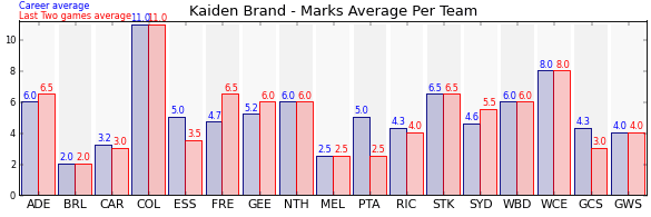 | Collingwood | 1 | 11.0 | 11.0 | 0.0 |