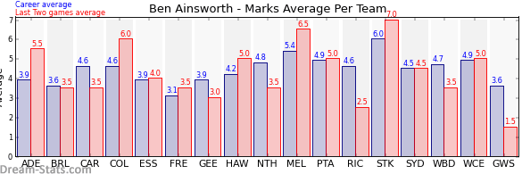 | Western Bulldogs | 9 | 3.5 | 4.7 | -1.2 |