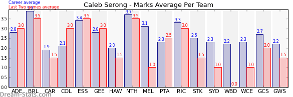 | Collingwood | 7 | 3.0 | 2.1 | 0.9 |