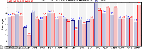 | Hawthorn | 7 | 5.5 | 4.9 | 0.6 |