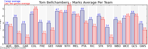 | Western Bulldogs | 4 | 3.0 | 3.5 | -0.5 |