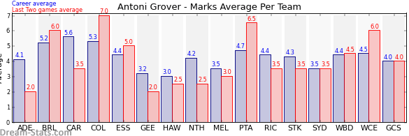 | Collingwood | 10 | 7.0 | 5.3 | 1.7 |