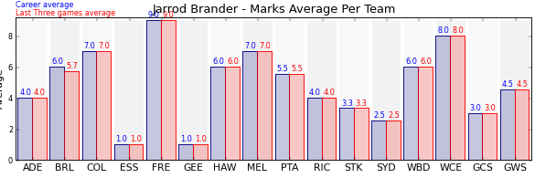 | Collingwood | 1 | 7.0 | 7.0 | 0.0 |