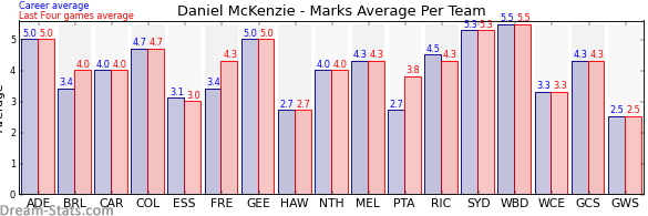 | Fremantle | 5 | 4.3 | 3.4 | 0.9 |