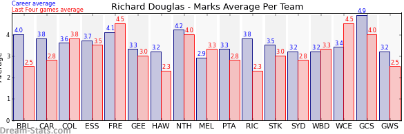 | Team | Games | Last 4 Avg. | Overall Avg. | Difference |